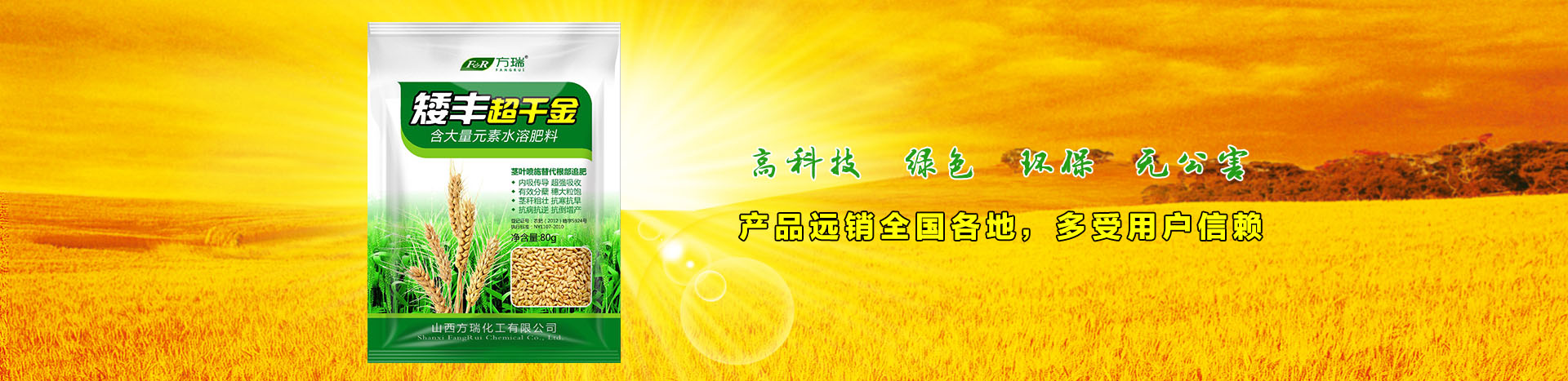 山西方瑞化工有限公司是專業的集研發、生產、銷售為一體的新型、******、綠色、科技、環保型肥料企業。公司技術力量雄厚,擁有先進的生產工藝及配套設備,特別在全元素水溶性肥料生產方面取得了輝煌的成就。...>> 詳情